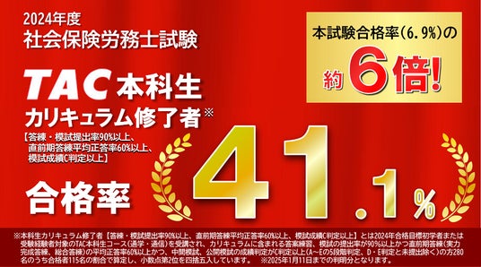 TAC本科生カリキュラム修了者 合格率41.1%!本試験合格率(6.9%)の約6倍!