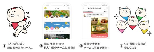 ・5人で励まし合いながら楽しく続けるデジタル・ピア(仲間)サポートアプリ
