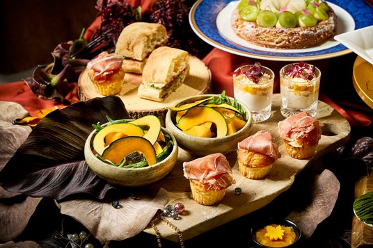 トスカーナの別荘を彷彿とさせる上質な空間で開催される、アフタヌーンブッフェ「オータムジュエル」。まるで宝石のように輝く秋のスイーツの豊かな季節の恵みとともに、優雅で贅沢な午後のひとときをお楽しみください。