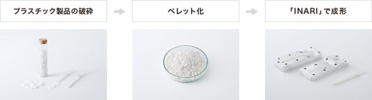 細かく砕いたプラスチック製品を「CONERI」に投入すれば、新たなペレットとして再生することができます。さらに、射出成形機「INARI」を使えば、再生したペレットを用いた成形まで可能です。「CONERI」は、廃プラスチックのリサイクルはもちろん、貴重な材料の再利用や、3Dプリンターから発生するサポート材の再利用などにもお使いいただけます。