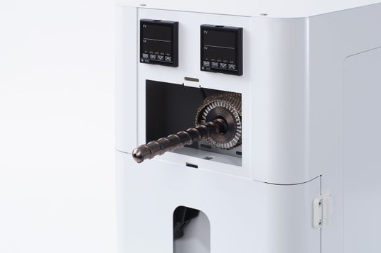「CONERI」は、簡単にメンテナンスできる構造や、材料の詰まりを防ぐホッパーの回転機構により、配合材を加えたペレットも気軽に試作できます。