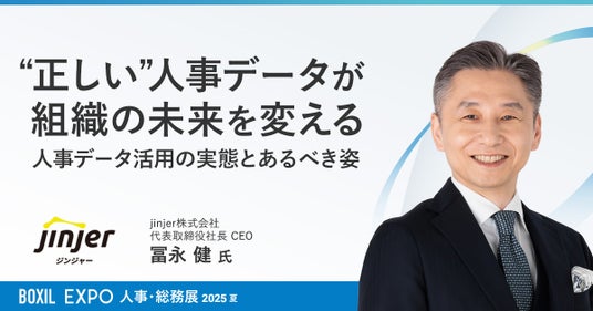 クラウド型人事労務システム「ジンジャー」を提供しているjinjer株式会社(本社:東京都新宿区 代表取締役社長CEO:冨永 健)は、2025年8月26日(火)~2025年8月29日(金)に開催予定の、スマートキャンプ株式会社主催の「BOXIL EXPO 人事・総務展 2025 夏」に、代表取締役社長 CEOの冨永が登壇することをお知らせします。