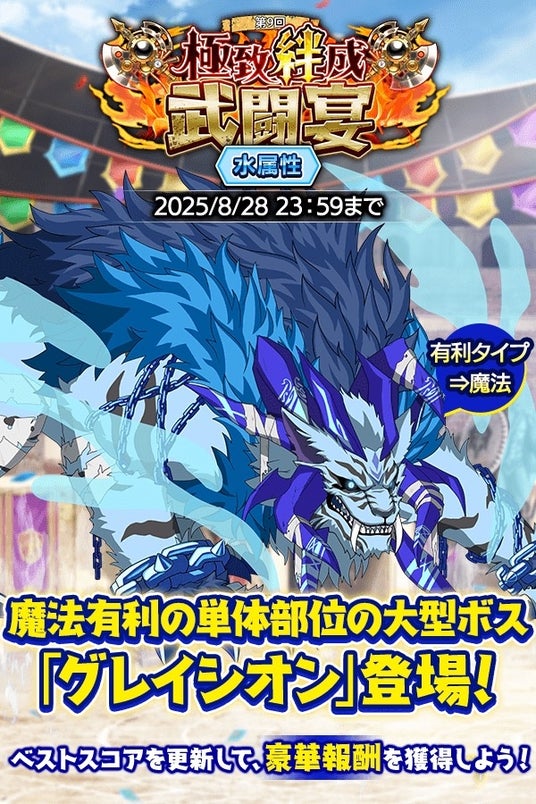合同会社EXNOA(本社:東京都港区、CEO:村中 悠介、URL:https://games.dmm.com/)が運営するDMM GAMESにおいて本日8月22日(金)より、共感できる「推し」が見つかるRPG『クレイヴ・サーガ 神絆の導師』にて極致絆成武闘宴が開催されたことをお知らせいたします。