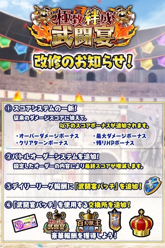 3.デイリーリーグ報酬に「武闘宴バッチ」を追加!