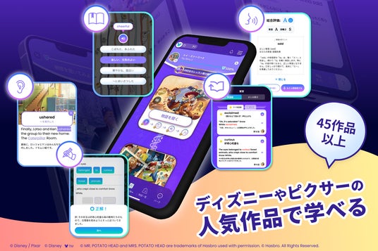 累計30万ダウンロードを突破した「ディズニー ファンタスピーク」は、ディズニーやピクサーの45作品以上(※)を題材に、英語を楽しく学べる大人向けの英語学習アプリです。