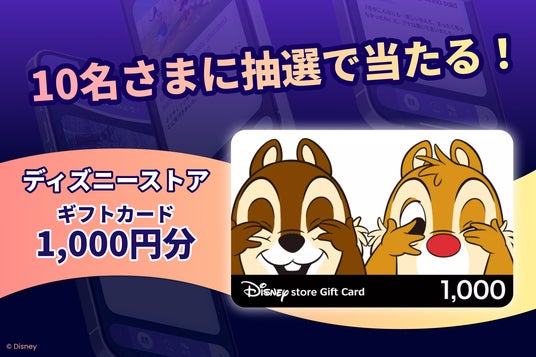 今回の作品追加を記念して、抽選で10名さまに、ディズニーストア店舗とディズニーストア.jpでご利用いただける「ディズニーストア ギフトカード」をプレゼントするキャンペーンを実施します。