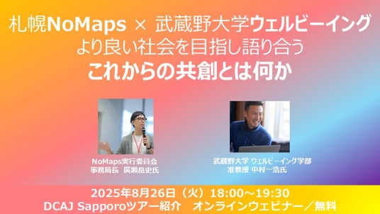 一般財団法人デジタルコンテンツ協会は2025年9月、札幌で開催される都市型フェス「NoMaps」の開催に合わせて「DCAJ Sapporo Tour」を開催します。そちらに合わせて、NoMapsが掲げる「共創」をテーマにしたオンラインセミナーを行います。