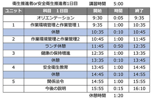 ■開催日程 (安全衛生推進者の御受講の方は1日目と2日目両方をご予約下さい。)
