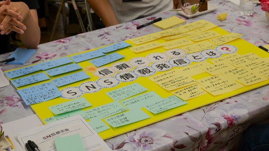 「信頼を得るSNS投稿とは何か?」をテーマに、付箋やシートを使って各社の発信方針を具体化。参加者同士の意見交換で学びを深めます。