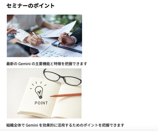 参加特典もご用意しております。明日から Gemini を業務に活かすための一歩を強力にサポートいたします。