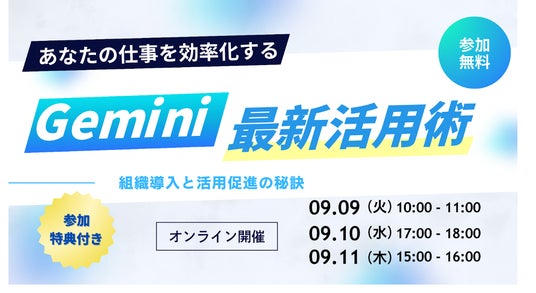 企業や教育機関のDXを支援する株式会社ストリートスマート(所在地:大阪府大阪市北区、代表取締役社長:松林大輔、以下:ストリートスマート)は、Gemini 最新活用術~組織導入と活用促進の秘訣~の無料セミナーを開催します。