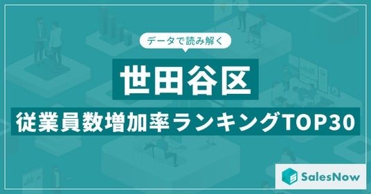 株式会社SalesNow(本社:東京都渋谷区、代表取締役:村岡功規、以下「当社」)は、国内540万社の企業情報を完全網羅した日本最大級のデータベース「SalesNow DB」より、人口の多い上位30都市を対象とした「従業員数増加率ランキング」を発表しました。本リリースでは、各都市別のデータをもとに、今回は「世田谷区に本社を置く企業」を対象に、従業員数の増加傾向にフォーカスします。