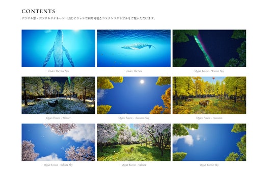 この度、創業10周年を機に風景コンテンツサービスサイト「LANDSKIP.JP」をフルリニューアルいたしました。本サイトは環境映像やデジタルアートを空間演出に活用するためのデジタルプラットフォームです。サンプルの視聴や実際の活用事例、コンテンツの候補選定から利用申請までをワンストップで行うことができます。