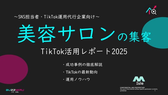 TikTok分析ツール 「BUZZMIRU」を販売する株式会社Isle(本社:東京都新宿区、共同代表:西森大祐・成宮邦亮)は、美容サロン業界のSNSご担当者さま向けに 『2025年版 TikTokトレンドレポート』 を無料公開しました。