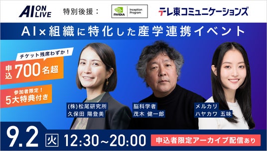 本イベントは公開後、経営者、人事責任者、DX推進担当者をはじめ、AI活用に関心のある多くのビジネスパーソンから、想定を大幅に上回るお申し込みをいただき、この度、参加申込者数が700名を突破いたしました。