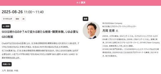 本セッションでは、生成AIの普及によって変化する生活者の検索・購買体験を踏まえ、企業がいま取り組むべき「GEO(AI SEO/LLMO)」施策について最新情報を解説します。