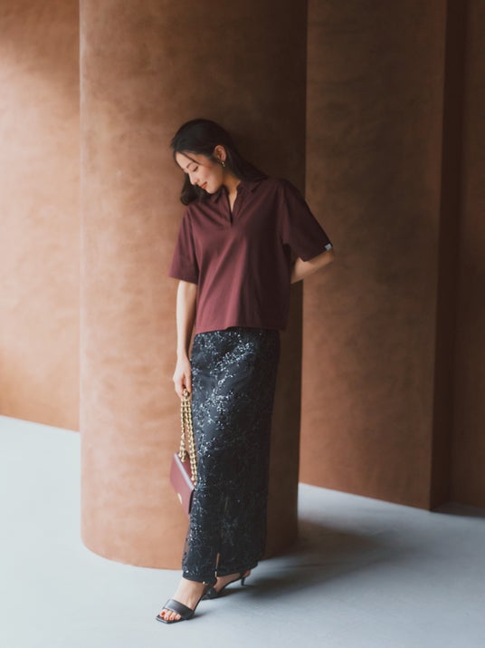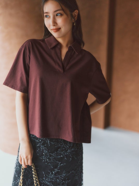 「ずっと欲しいと思っていたラガーシャツ、やっと理想のシルエットのものに出会えました。秋らしさが香るボルドーも、女っぽさを上乗せしてくれるので素敵。」