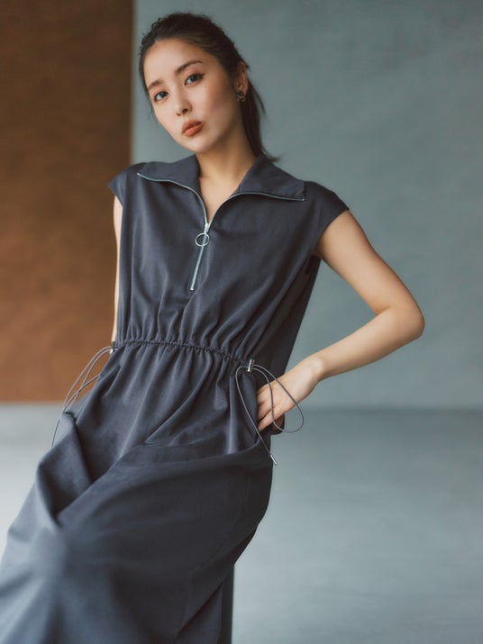 コーデに悩まず手に取れてサマになるカットソーワンピは、今季らしいハーフジップがポイント。
