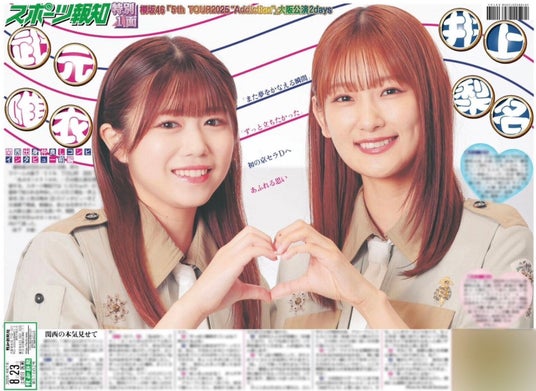 スポーツ報知を発行する報知新聞社(代表取締役社長・長谷川剛)は8月23、24日に開催された櫻坂46「5th TOUR 2025 "Addiction"」京セラドーム大阪公演を記念し、櫻坂46特別1面新聞を販売しました。2日間、京セラドーム大阪周辺で発売された特別1面新聞を通信販売します。税込180円プラス送料で、特別1面新聞の1面ページ以外は8月23、24日付のスポーツ報知大阪版紙面になります。現地にお越しになれなかった方もこの機会にぜひお買い求めください。