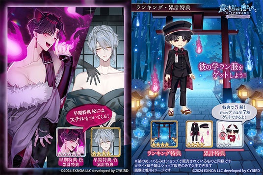 添い寝イラスト(夜刀)の枕カバー(上位10名)、火の玉揺れる夜の参道、イベント称号「震える私を抱きしめて」、その他ゲーム内アイテム