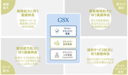 GSXは、2028年3月期までの中期経営計画として、既存事業で年率25%の売上成長を掲げておりますが、今後、さらなる成長をより確かなものにすべく「成長のための4つの要素」を設定し、それぞれの目的に対し共に強力に事業を推進できる戦略的パートナー企業と業務提携を含めた提携関係を構築し、事業拡大と企業価値向上を目指して参ります。