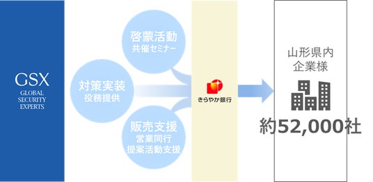 グローバルセキュリティエキスパート株式会社(本社:東京都港区海岸1-16-1、代表取締役社長:青柳 史郎、証券コード:4417、https://www.gsx.co.jp/ 以下、GSX)と、株式会社きらやか銀行(山形県山形市旅篭町三丁目2番3号、https://www.kirayaka.co.jp/ 以下、きらやか銀行)は、業務提携契約を締結し、きらやか銀行が商圏とする山形県全エリアの企業様約52,000社に対しサイバーセキュリティサービスを提供します。
