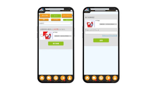 獲得方法:NFT対応ブースで景品獲得条件を満たすと、ゲーム内でNFT獲得権が付与されます。獲得権は当社へ登録したユーザーのウォレットアドレスを登録することで、NFTを受け取り可能です(連携フローはアプリ内ガイドにて案内)。