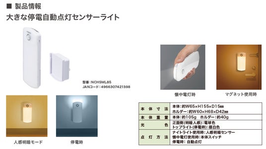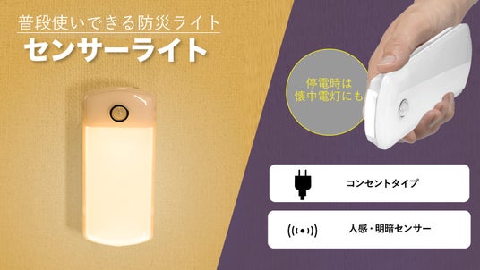 ●普段使いできる防災ライト。停電時には自動で点灯します。