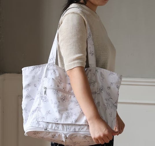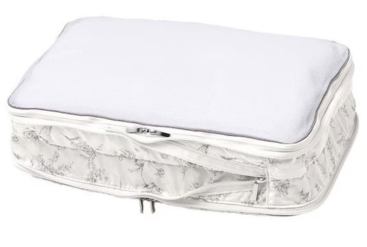 トラベルバッグ(BW)は、コンパクトに持ち運べます。スーツケースにも差し込めるファスナーポケット付き