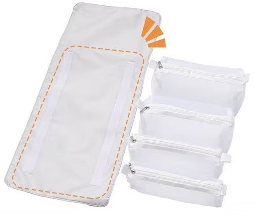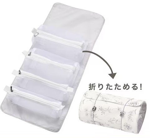 トラベル化粧ポーチ(BW)は取りはずし可能な大小4つのメッシュポーチ付き
