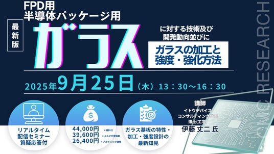 ――FPDガラスとパッケージ用ガラスの特性比較、加工プロセスと強化法を解説。ガラス基板研究・開発者必見の実務セミナーです。