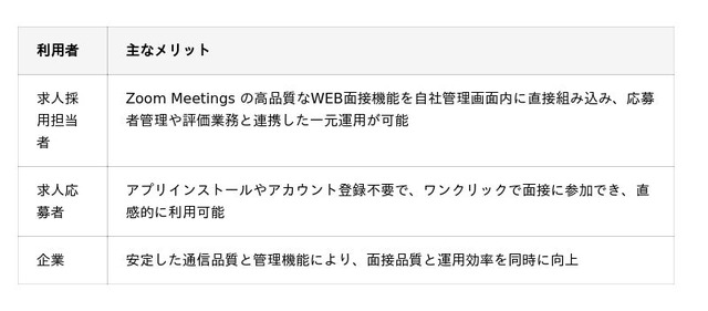 こうした背景を受け、当社は「ビズプラ採用管理」におけるWEB面接機能のさらなる強化を目指し、Zoom ISVパートナープログラムへの参加を決定いたしました。