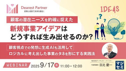 本セミナーでは、思い付きではない本質的な新規事業アイデアを生み出すために、まず 「常識」や「暗黙の前提」を疑うクリティカルシンキングと、顧客の本音に迫るデザイン思考に基づいたロジカルな発想法を解説します。さらに、それらの思考プロセスの“上流フェーズ”で生成AIを活用する方法を紹介。新規事業においては資料作成やプレゼン作成のツールとして使われることが一般的だったAIを、視点と視野の拡大・仮説の掘り下げ・構想の整理にどう活かしていくかを、具体的なプロンプト事例とともに実践的に解説します。