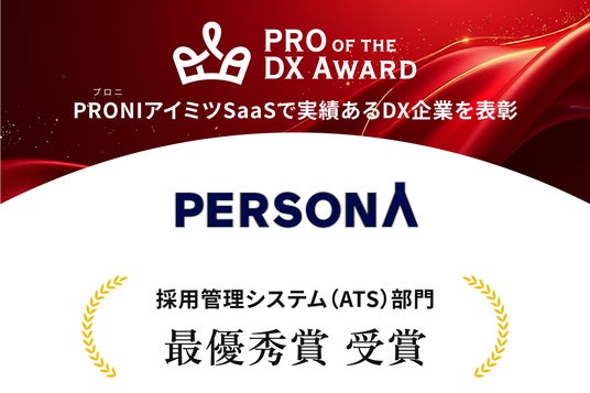 株式会社アサイン(本社:東京都千代田区)が提供する採用管理システム「PERSONA」は、PRONI株式会社が主催する「PRO of the DX Award 2025(上期)」において、採用管理システムカテゴリの最優秀賞を受賞しました。