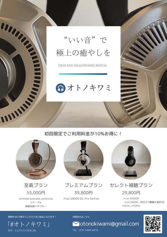 現在は FOCAL UTOPIA(初代)、final D8000シリーズ、final DX6000、HiFiMAN SUSVARA UNVEILED などの実機を所有し、自ら検証を続け、その魅力をレンタルサービスとして届けています。