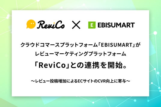 株式会社インターファクトリー(本社:東京都千代田区、代表取締役社長 兼 CEO:蕪木 登、以下 インターファクトリー)が提供するクラウドコマースプラットフォーム「EBISUMART(エビスマート)」は、株式会社ReviCo(本社:東京都渋谷区、代表取締役:高橋 直樹、以下 ReviCo)が提供するレビューマーケティングプラットフォーム「ReviCo(レビコ)」との連携を開始しました。