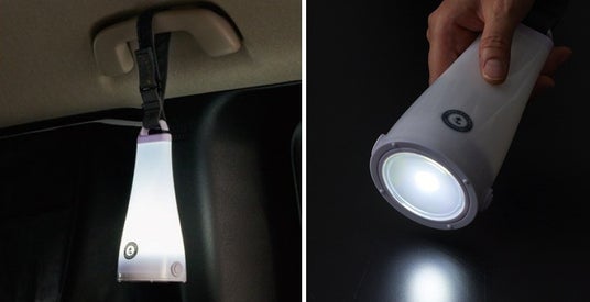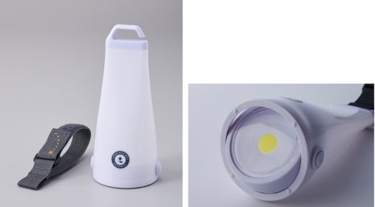 底をくるっと回転させると、ランプから懐中電灯に変身する2-WAYライト。車内では周囲を照らすランプ、夜間の探し物やトイレ移動では懐中電灯として使い分けることができて便利です。車のアシストグリップなどに引っ掛けてランプを吊るせるストラップ付き。玄関など、家の中の持ち出しやすい場所に常備しましょう。