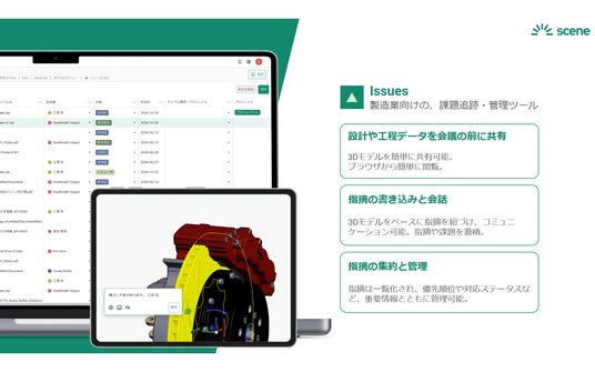 ものづくりのワークスペース「Scene Workspace」を開発・提供するScene株式会社(代表取締役:ビジャヤン・スワティナト/本社:東京都渋谷区)は、ミッションである『革新者を力づけ、物理世界の変革を加速する』のもと、3Dドキュメントツール『3D Docs』および設計レビューツール『Issues』において、各種3D CADソフトウェアのネイティブ形式対応を開始しました。