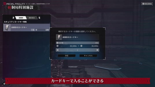 この施設には、フィールドの宝箱などで獲得できる「カードキー」を使うことで挑むことができます。カードキーの種類によって施設の構造は変化し、カードキーのレアリティが高いほどレアな装備を獲得できる確率が上がります。