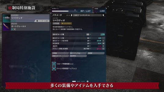 複数階構造で入り組んでいる施設では、多くの装備やアイテムを獲得することができます。手に入れたものは、最下層まで踏破すると拠点に持ち帰ることができます。