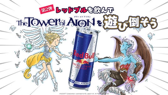 今回のコラボを記念し、「タワー オブ アイオン」の天族と魔族が「レッドブル・エナジードリンク」を持つ限定カートゥーンイラストを公開しました。
