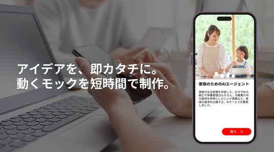 アイデアやビジョンをAIを活用して圧倒的なスピードでカタチにします。アイデアがクリアになっている状態で、数時間~数日でプロトタイプが完成します。関係者間の認識を揃え、潜在課題を可視化するだけでなく、ユーザーテストや市場検証を通じて、事業展開の成功確立とスピードを劇的に向上させます。