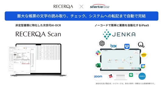 「AIの社会実装を通じて、今までの “できない” を解決する」を掲げる株式会社リチェルカ(本社:東京都港区、代表取締役CEO:梅田 祥太朗、以下「リチェルカ」)は、同社が提供する非定型帳票に特化した次世代AI-OCR「RECERQA Scan(リチェルカ スキャン)」において、スターティアレイズ株式会社が展開するデータ連携ツール「JENKA(ジェンカ)」との連携を開始し、相互販売店契約を締結したことをお知らせいたします。