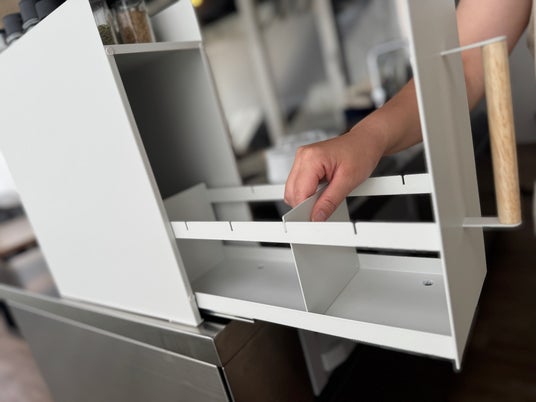 さらに、調味料が少なくても中で倒れないよう、仕切り板を調整可能にしました。
