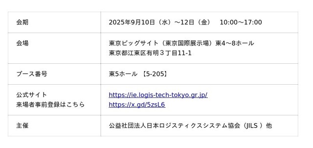 株式会社YE DIGITAL(本社:北九州市小倉北区 代表取締役社長:玉井裕治、以下、YEデジタル)はこの度、2025年9月10日(水)~12日(金)の3日間、「東京ビッグサイト」で開催される『国際物流総合展2025 第4回 INNOVATION EXPO』に出展します。