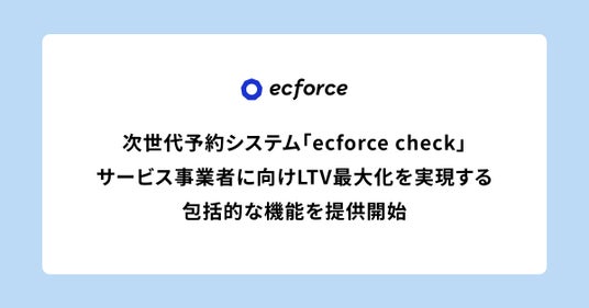 しかし、従来のサービス提供時の運用では、予約・決済・物販・CRMにまつわるシステム・ツールが別々に導入されているケースが多くあります。そのため各接点で顧客データが分断され、十分に活用できない状況に陥っており、これらがLTV最大化を阻む要因となっています。そこでecforce checkは、予約から来店、そしてその先の売上創出までをワンストップで支援する機能を開発しました。これにより、顧客データの分断を解消し、持続的な売上や事業成長を支える環境を提供します。