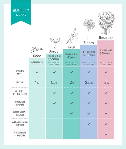 @cosme+ブランド公式ショップ 会員ランク制度案内ページ