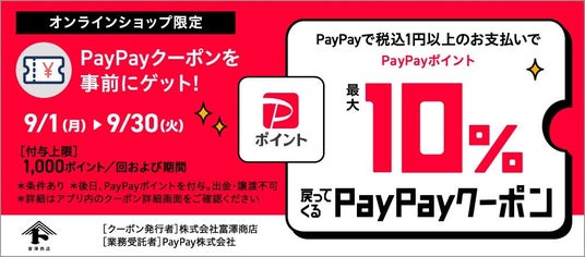 ■【9月限定】PayPay導入記念「最大10%ポイント付与キャンペーン」を開催