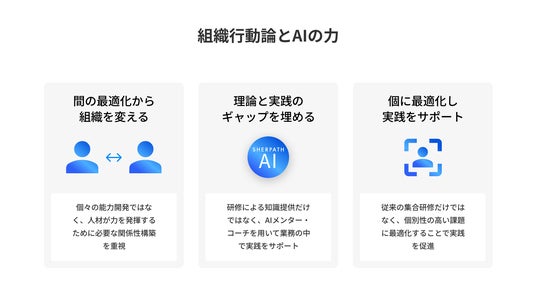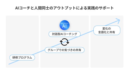 一方で、研修にも「組織を特定の方向に変革する」ことにおいては大きな効果を発揮します。 そこで、当社は研修の効果を最大化させるための仕組みとして、研修内容を学習したAIコーチを提供することとしました。