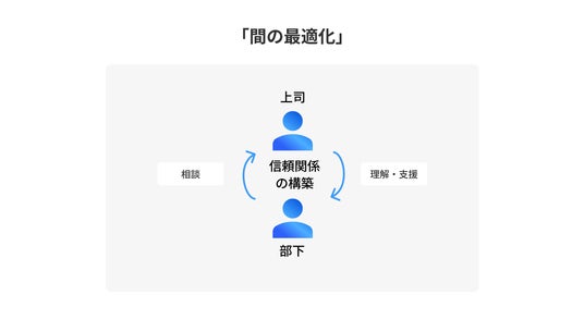 シェルパスはこの課題を解決するために、個人の能力開発ではなく「上司と部下の関係性」に焦点を当て、上司と部下の「間の最適化」をコンセプトにしたアプローチを採用しています。